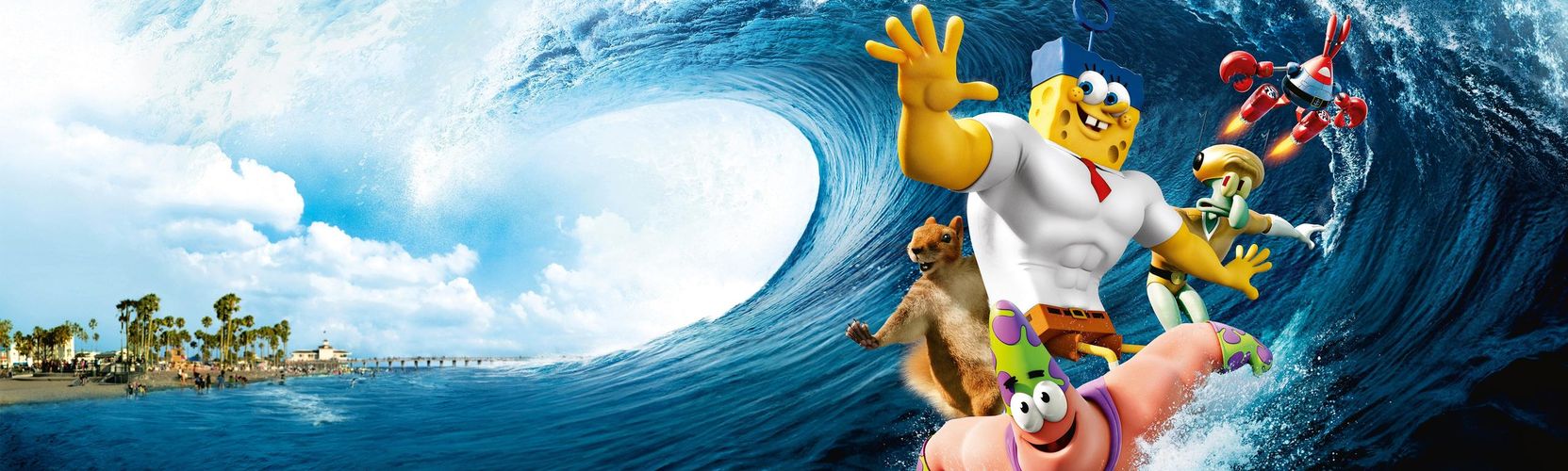 SpongeBob je mořská houba, která nosí kalhoty, bydlí v ananasu a dělá úžasné krabí hambáče u Křupavého kraba. Jeho dalším poznávacím znamením je, že ho milují děti na celém světě, protože je tělem i duší dobrodruh, který ke všemu přistupuje s humorem, někdy pořádně svérázným. Jak napovídá název, v tomhle filmu ho patrně humor přejde, protože se ocitne v pro něj naprosto šokujícím prostředí – tedy na souši. A přitom vše začalo tak idylicky, dalším báječným ránem v podmořském městečku Zátiší Bikin, kde u Křupavého kraba stála dlouhatánská fronta na mňamózní krabí Burgery připravované podle tajného receptu. U konkurenčního podniku, Kamarádského kyblíku, zase tradičně nikdo nebyl a jeho majitel Sheldon Plankton se, rovněž tradičně, pokoušel tenhle tajný recept ukrást, aby se fronta přesunula k němu. Idyla skončila ve chvíli, kdy se magickým trikem zmocnil návodu na ty nejlepší hambáče pirát Hambivous (Antonio Banderas), zaparkoval svoji kocábku na pláži a proměnil ji ve stylový stánek s rychlým občerstvením. SpongeBobovi a jeho kámošům nezbyde než rozpumpovat svaly, vynořit se, trochu oschnout a vybojovat si recept zpátky. Jejich spravedlivý boj bude komplikovat fakt, že souš je pro ně vážně nepřátelské prostředí, na druhou stranu získají nevídané superschopnosti. Takže se těš, piráte!