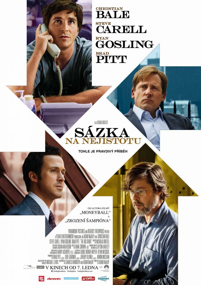 Sázka na nejistotu vypráví příběh čtyř outsiderů, kteří všechny vlky z Wall Street proměnili v obětní beránky. Tihle čtyři byli jediní, kdo si spočítal, že světová ekonomika nemůže růst do nekonečna. Vsadili na jednu kartu, srazili banky na kolena a krutě se napakovali. V roce 2005 jste mohli v Americe dostat stoprocentní hypotéku na luxusní vilu s dvaceti ložnicemi a bazénem a nikdo se vás neptal, jestli ji dokážete a máte z čeho splácet. Excentrický finančník a fanoušek heavy metalu Michael Burry (Christian Bale) si uvědomil, že podobných riskantních hypoték je takové množství, že se mohou stát časovanou bombou, která dřív nebo později odpálí celou americkou ekonomiku. Vyvinul proto důmyslný finanční nástroj, který mu měl přihrát obrovský balík peněz v případě, že hypoteční bublina praskne, a investoval do něj celé jmění. Sázka na nejistotu se jemu a třem podobným vizionářům vyplatila o tři roky později, kdy milióny Američanů přišly o střechy nad hlavou a o práci a navíc ze svých daní kryly ztráty nenažraných bank.